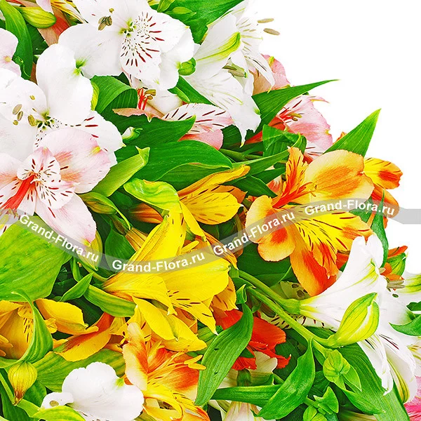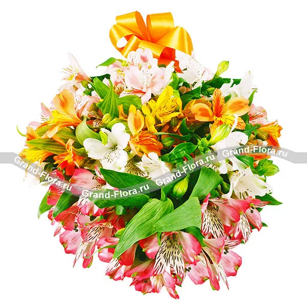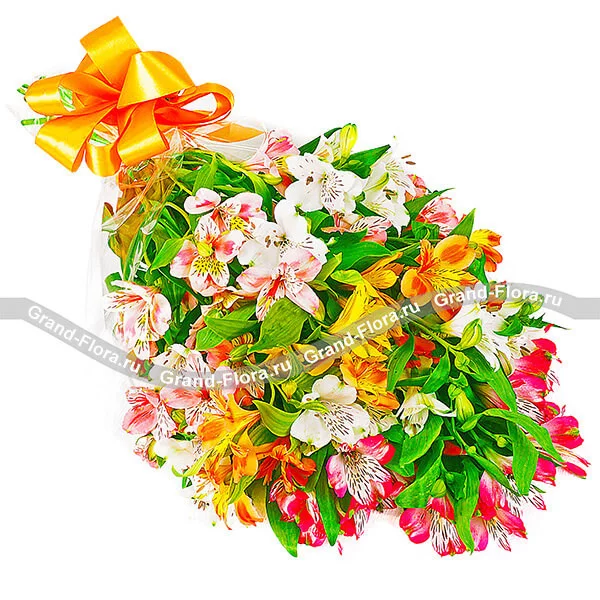 Заказывала такой букет сестре на день рождения. Обращалась во многие фирмы- ни у кого не было в Саратове альстромерий. Спасибо гранд Флоре, за прекрасную работу. Заказ приняли меньше чем за 5 минут, и уже через 2 часа букет был доставлен(яркий, пушистый). Сестренка в восторге. еще раз Спасибо Вам. Буду уже только через Вас отправлять.